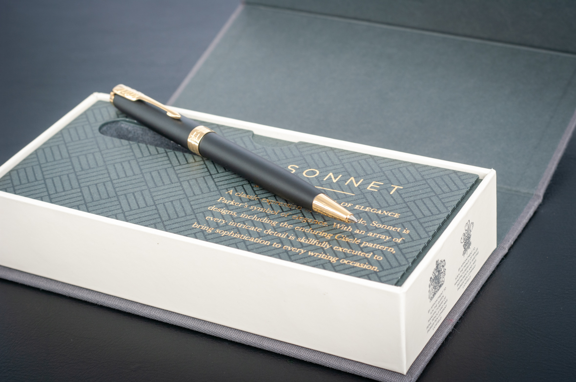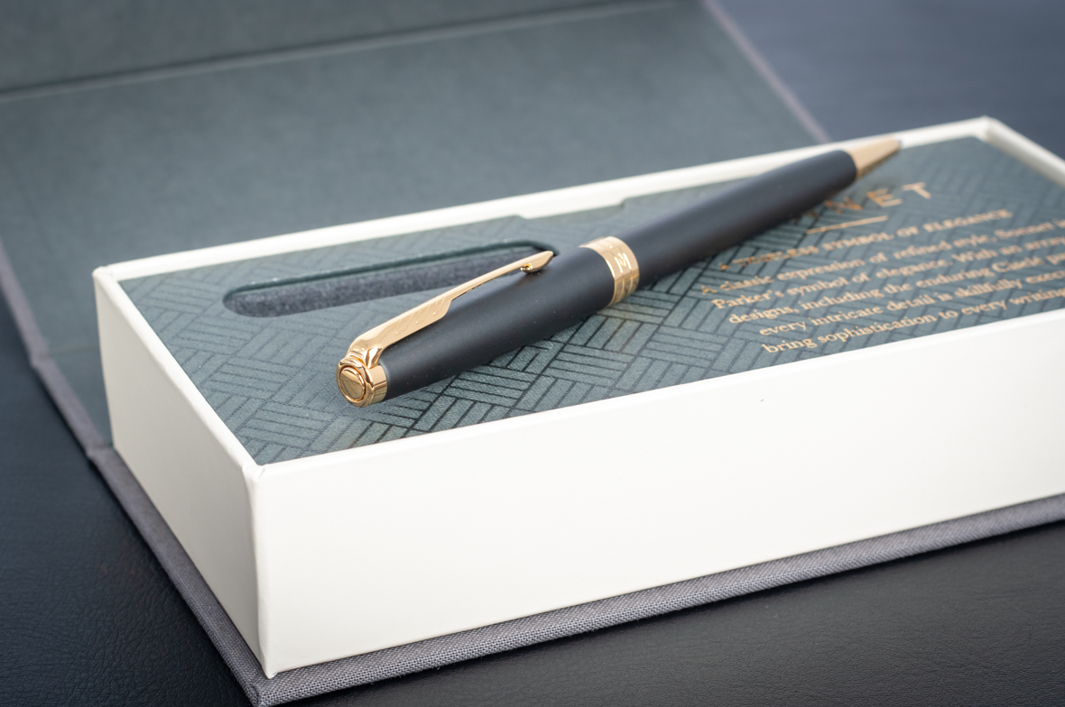 Шариковая ручка Parker Sonnet Matte Black GT от официального дилера Parker в Муроме. Вы можете дополнительно заказать гравировку, которая подчеркнет Вашу оригинальность и придаст памятность статусному подарку. Все ручки Паркер поставляются в фирменном футляре.